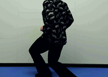 Pozycja wyjściowa i ruch jak w ćw. 3, tylko z pozycji skrzyżnej powrót do pozycji Ma Bu podskokiem - odbicie z obu nóg, obrót ciała w powietrzu i lądowanie na dwie nogi z równym rozłożeniem ciężaru. Powtórzyć 10 razy na każdą stronę.
