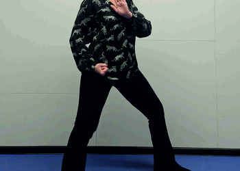 Pozycja Deng Shan Bu na lewą stronę – lewa noga z przodu, kolano zgięte, palce stopy skierowane na wprost, prawa noga z tyłu, kolano wyprostowane, palce stopy ustawione w przód w skos, rozłożenie ciężaru 60% na nodze wykrocznej, 40% na nodze zakrocznej, tułów wyprostowany, lewa ręka z boku ciała, ułożona grzbietem do środka i palcami w przód, prawa ręka zaciśnięta w pięść, skierowana w przód w skos (Ryc. 2a i 2b). Przejście do pozycji Si Liu Bu poprzez lekki skręt bioder w prawo i przeniesienie ciężaru w tył z równoczesnym ściągnięciem prawej pięści skierowanej wnętrzem w górę do biodra i ułożeniem lewej ręki przy prawym barku z otwartą dłonią skierowaną wnętrzem w prawo i palcami do góry (Ryc. 2c i 2d). Następnie blok lewą ręką nad kolanem i przesunięcie ręki w bok (Ryc. 2e i 2f) oraz wykonanie uderzenia prawą ręką w brzuch z przejściem do pozycji wyjściowej (Ryc. 2a i 2b). Powtórzyć 10 razy na obie strony.
